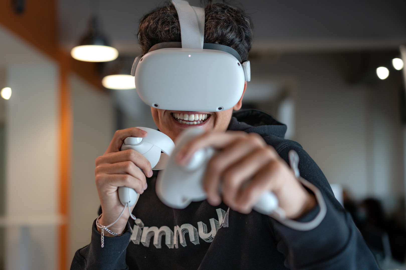 Simmula funziona esclusivamente con Meta Quest 2. Meta Quest 2 è una cuffia wireless, all-in-one, indipendente, che non richiede un PC e può collegarsi direttamente alla rete Wifi. Grazie al suono cinematografico 3D integrato e alla grafica di nuova generazione, Meta Quest 2 è un’esperienza davvero coinvolgente.